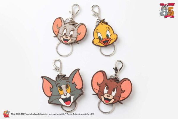 “トム”と“ジェリー”、いつもおむつを着用している小さくてかわいいねずみ“タフィー”、キュートでガサガサ声のアヒルの子“クアッカー”、4キャラクターの姿を、それぞれ3タイプのレザーキーホルダー(キーリング)に落とし込みました。